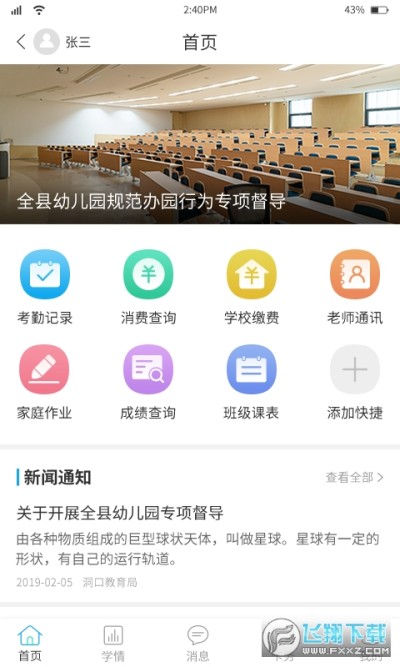 新闻通知与学生学情板块可加强家长同老师、学校的联系,了解学生所在班级、学校的最新动态。