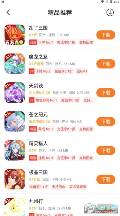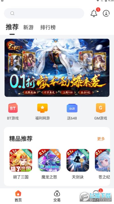 0.1折手游盒子app官方版为用户带来各种福利手游,都是0.1折的福利游戏,这款游戏盒子的功能丰富,支持多种类型的游戏,直接在线玩,还有精准分类,帮助你快速找到感兴趣的游戏类型,喜欢玩游戏的快来下载吧!