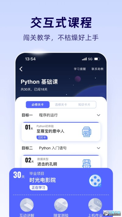 传统课堂参与感不强?在这里,码出属于自己的程序 *纯理论太枯燥?一课一练,边学边练,注重实操