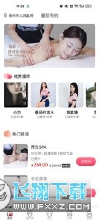 2、软件会智能为用户推荐按摩手法好,颜值高,好评较多的技师,用户选择技师时可以参考系统推荐的技师;
