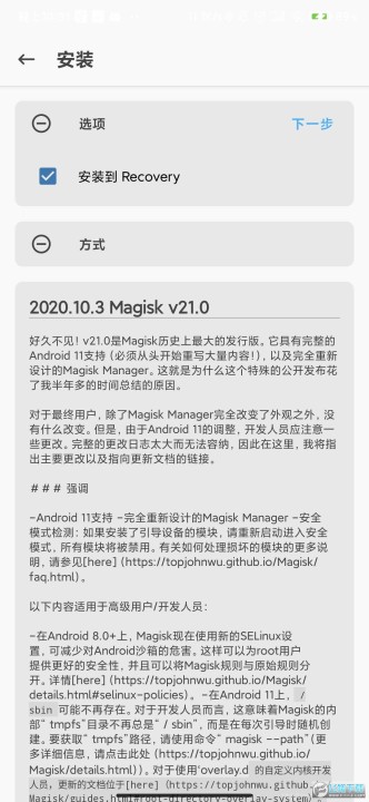 7、如果您已经安装了Magisk,强烈建议直接通过Magisk Manager进行升级。