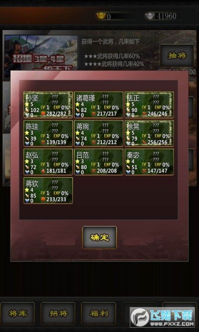 2.福利系统:每天武将免费抽,普通抽2次,高级抽1次