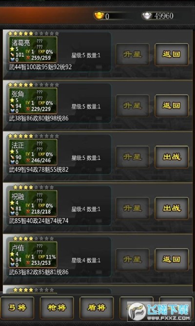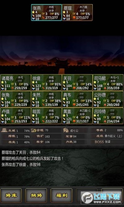 3.放置系统:发展用内政魅力高的,打仗用智力武力高的,合理放置武将让收益最大化