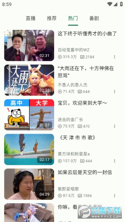 首页十分简洁,直播、热门、推荐、番剧,就这四个类别。