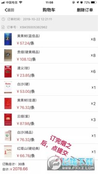 用户订购的卷烟均保存在购物车中,确认无误后,再点击提交。