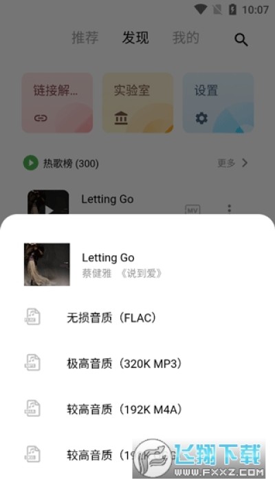 4、支持低音质(48k m4a)、普通音质(96k m4a)、标准音质(128k mp3)、较高音质(192k m4a)、极高音质(320k mp3)、无损音质(48k flac)歌曲下载听歌。
