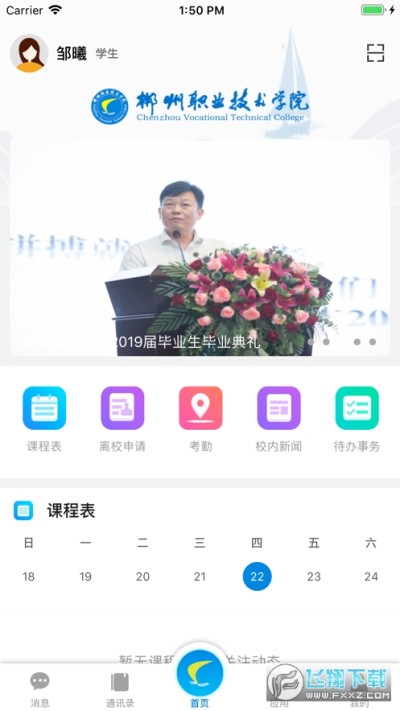 “智慧郴职”完成了学校内部移动信息门户的展示操作平台,将支持全校师生用户在移动APP端完成校园管理、学生生活、学业课程等业务,方便师生教学、学习、生活。