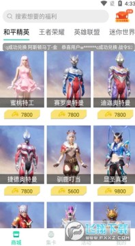 2、在商城这里,用户可以通过迷你点兑换稀有皮肤,支持和平精英、玩着荣耀、英雄联盟、迷你世界、摩尔庄园、奥特曼传奇英雄等多种热门游戏;