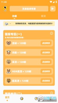 1、在本站下载安装芝麻画质怪兽120帧官方版,打开软件,用户想要使用软件需要先完成任务或者购买卡密才能使用体验画质提升,然后我们就可以使用画质修改功能,软件提供了多种画质修改功能。