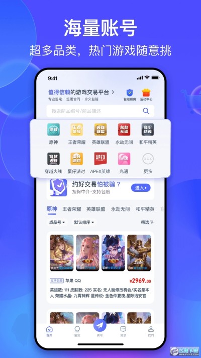 氪金兽app安卓版是一款超棒的游戏资讯类软件。内置王者荣耀、和平精英等热门手游大量英雄皮肤账号低价卖,各种账号都可以去快速的进行管理,专业估价师可以针对账号进行评估,海量的游戏福利满足你的需求!还有绝地求生、英雄联盟等游戏的海量账号出售!