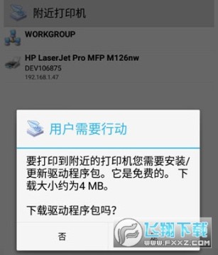 在附近打印机中找到设备后,点击设备会提示要安装驱动包,一定要下载安装,否则无法打印。