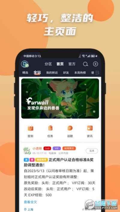 绒毛墙app是一款中文兽文化交友平台,全新兽圈社交类APP,用户可以注册登陆你的账号,在这里结交兽圈同好,选择感兴趣的社区版块加入聊天吧,分享相关帖子留言互动体验,对软件感兴趣的话不妨点击下载试试!