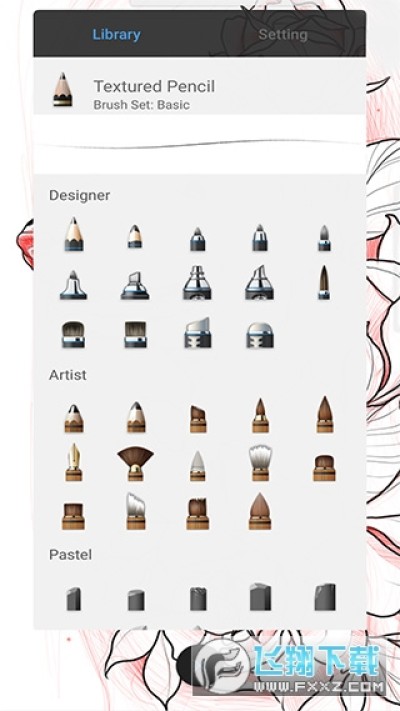 完整的画笔库:100 多种预设铅笔、钢笔、画笔和马克笔。
