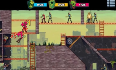 愚蠢的僵尸3是一款休闲射击手游,游戏中玩家需要利用数量有限的子弹去击杀特定的僵尸目标,在子弹数量小于目标僵尸的情况时,就需要玩家利用墙壁弹射子弹来完成击杀。