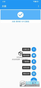 打开模块管理就可以看到安装的模块,勾选模块的时候会提示该模块支持应用的版本,而应用版本也可以再太极主界面看到,版本不兼容是使用不了模块的 。