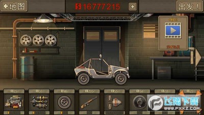 这是一款末日逃亡的跑酷游戏,游戏目标简单明了就是一路向前,越过障碍物和僵尸,不过战车基本上都是撞过去的,我相信不少人都会觉得把僵尸撞得肉末飞溅是这款游戏的非常刺激的画面。游戏的界面和操作也是很简单的,这非常适合新玩家上手。进入游戏界面后,在屏幕的左下角是调节战车重心的两个按键,在中部是战车的仪表,上面显示时速、油量和推进器的燃料量,在最右侧是油门,在战车升级加装推进器后会有一个推进器的油门按钮出现。通过游戏中战车达到的距离获得金币来购买或升级战车的配件,已使战车能够达到更远的地方,直至到游戏关卡的终点,在通过一个关卡后会获得更强大的战车,来应对之后更加恶劣和复杂的道路。
