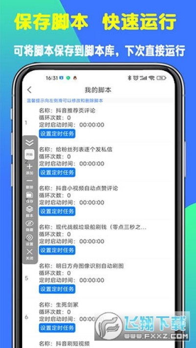 9、支持储存和加载自定义脚本,支持定时启动、定时停止