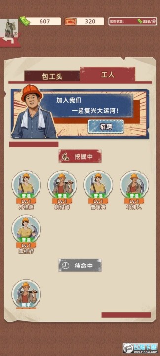 9、点击招聘,扩大施工队,加速工作进度;