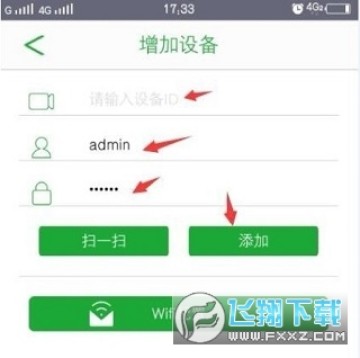 3、之后我们在增加设备的界面,我们输入设备的ID、用户名和密码之后,点击添加按钮即可。