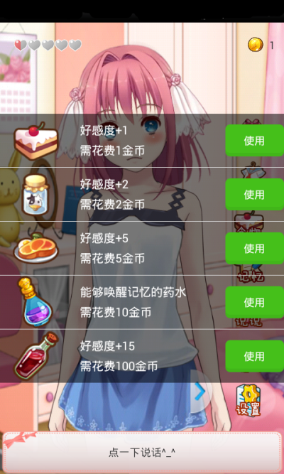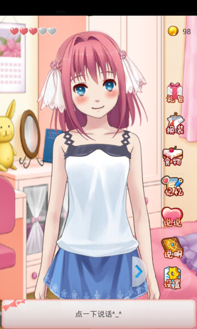 可以随时无条件陪伴你的携带女友来啦!带给玩家前所未有的3D真实互动养成体验!喂食、换装、添加记忆等人性化功能更能带给你满满和女友相处的满足感!她会和你默契的聊天,会因你的触碰害羞的做出反应,会因为没按时吃东西生气不理你,会撒娇让你给她买漂亮的衣服,更会随着好感度的增加在和你相处的每一天拥有属于你们的独家记忆,培养出属于属于你们自己的浪漫罗曼史!