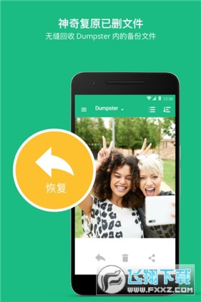 恢复起来简单迅速!只需要进入Dumpster回收站,点击要还原的文件或图片,它们就神奇地立刻回到了您的设备上。Dumpster会保存删除的图片、视频、文件、以往的应用版本、文稿等数据。不论您要还原什么数据,Dumpster都能瞬间为您恢复。
