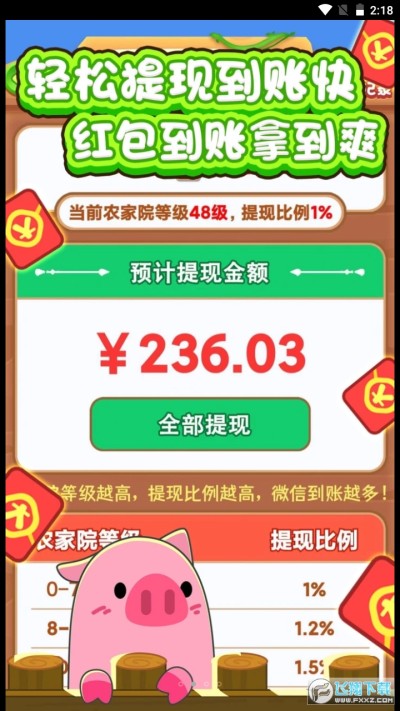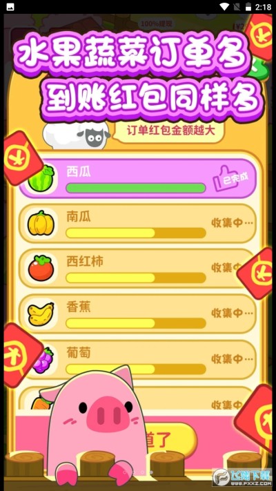 向往的农家院是一款农场种植经营领红包游戏,管理自己的农场并种植各种农作物,合理的规划和经营,完成订单,获得红包奖励。在向往的农家院中,趣味经营,轻轻松松赚零花。挂机种植版本,新人只送了15元左右,要完成几个订单获取奖励。多使用全体加速和交换市场功能,这样能快速完成订单。红包初始按百分之一比例提现。