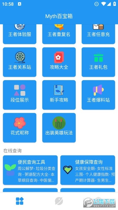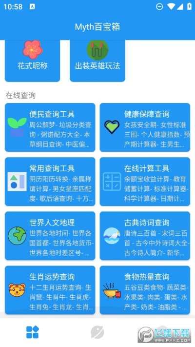 myth百宝箱app是一款安卓手机工具软件,软件中包含超多实用功能可以免费体验,一个软件就包含了不同功能内容,在线即可进行搜索、查询等等操作,使用起来非常简单,对软件感兴趣的话不妨点击下载试试!