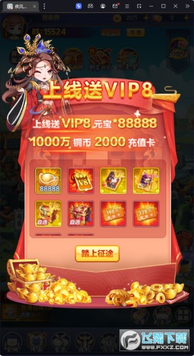 专属定制赞助,每天狂领5E元宝、无限HUR武将卡