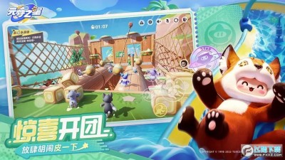 3、与可爱卡通动物穿梭于明亮画风的世界,享受乐园派对的快乐。