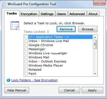 WinGuard Pro 可以锁定指定程序窗口,如控制面板、我的电脑、资源管理器等,只有输入正确密码才可访问,才能打开这些锁住的窗口。