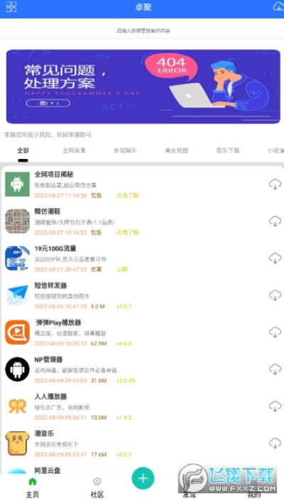 1、首先,进入卓聚社区,浏览或利用社区的搜索功能查找你需要的资源或软件。