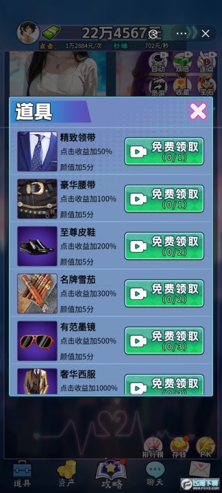 不断通过点击屏幕积累财富,解锁更多女神直播间~