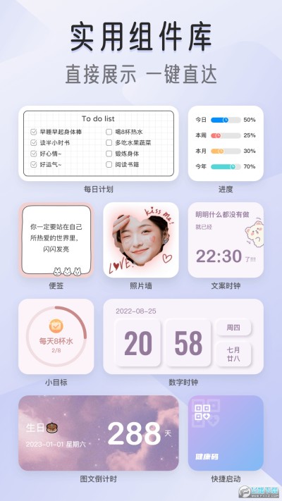 这款软件当中的各种桌面小组件非常的受欢迎,可以让手机桌面变得更加的好看,而且还可以直接进行同色系搭配,快速的进行替换,还提供了比较优质的动态小组件,能够让手机桌面变得更加好看。