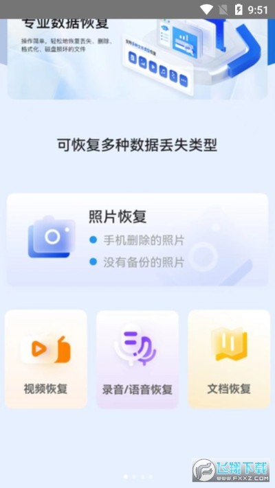 2、支持多种文件类型的恢复,包括照片、视频、音频、文档等。