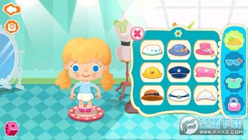2、看,糖糖正准备出门呢,先给她来个时尚大变身。点击左边的“衣服”气泡,即可为她换上精美的套装。哇,美美哒!