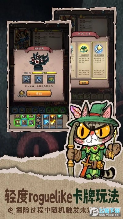 《卡牌迷境》是一款猫咪为主题的轻度roguelike策略卡牌游戏。玩家将跟随主角们探索各个关卡,击败变异的怪物猫猫,提升等级和装备,走出可怕的梦境世界。游戏中有多个角色选择、丰富的元素流派搭配、还有各种随机事件冒险,让玩家每次进入关卡都能体验截然不同的乐趣。