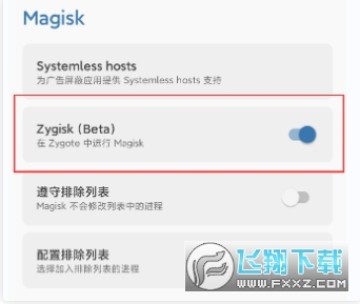 3、在第三方REC中刷入Magisk(面具)框架,并且开启面具里设置里的 Zygisk 模式