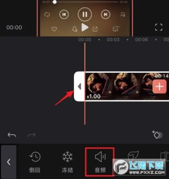 分离后,可以看到音乐音频就出现在时候上方。长按下方的视频。