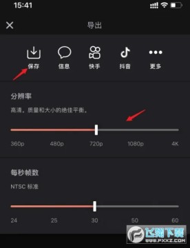 选择视频的分辨率及帧数,点击保存的图标即可。