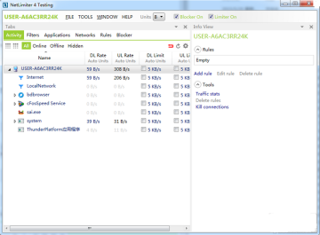 很多用户讲到网速的时候都只追求下行速度,即下载和浏览网页的速度。其实上行是速度也是同样重要,而且一般情况下下行比上行小的多,所以需要对网络带宽进行合理的分配。NetLimiter是一款合理分配网络带宽的工具,可以完全限制软件上传带宽,这样网络电视和浏览网页、游戏就可以同时进行了。