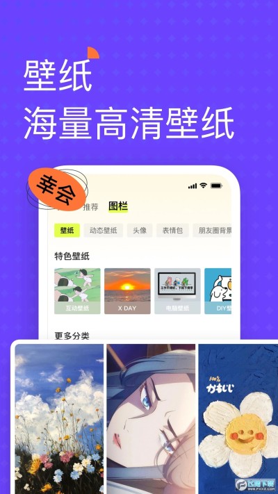拥有海量高清壁纸、头像、表情包、背景图;每日超千款放松,完美适配,让你的每天与众不同;各种风格的有趣贴纸,让你的自拍不再单调;超美炫酷的滤镜特效,打造最具创意的你。