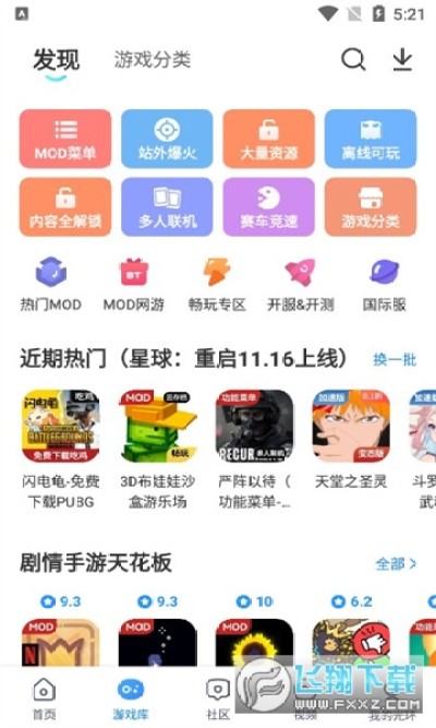 2、在游戏库中我们可以挑选多种不同类型的游戏,有联机手游、端游移植、抖音热游等板块,都可自行选择。
