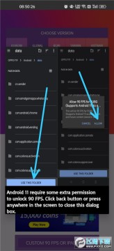 1) 要在运行低于 android 11 的设备上解锁 90 FPS,请允许权限并单击解锁 90 fps 按钮而已。