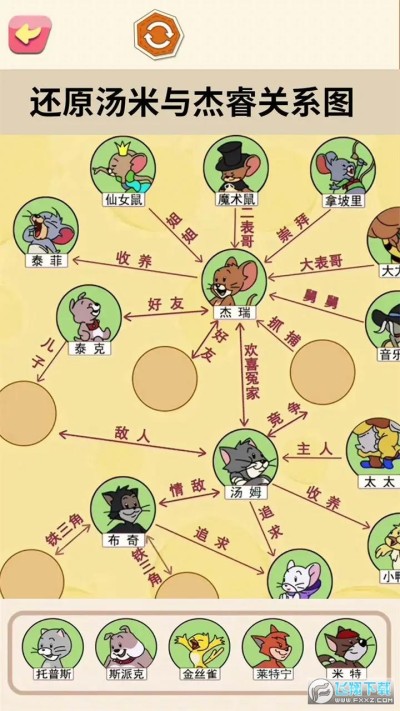 一起还原人物关系免广告最新版是一款闯关玩法的休闲益智游戏,玩家将要在关卡里构建各种角色的关系,每个关卡都有玩家们熟悉的题材和背景,将适合的角色放在相应的位置完成关卡挑战,适合在日常生活中挑战解压的玩法,想要的体验的小伙伴快来试试吧!