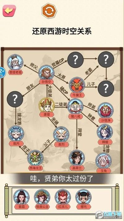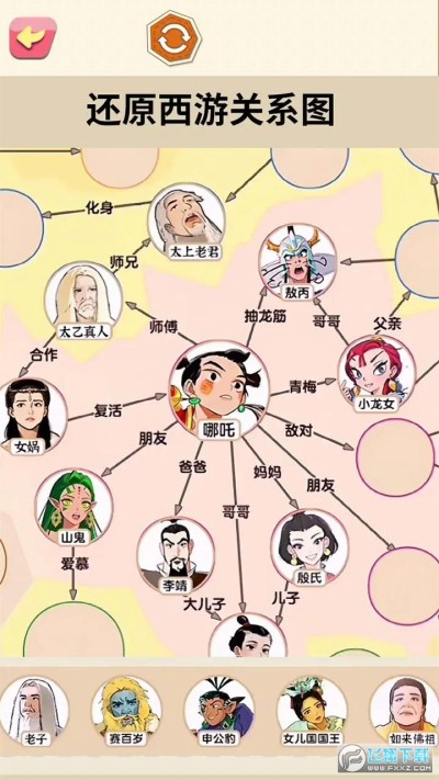 《一起还原人物关系》这是一款休闲益智类小游戏,西游和三国人物关系你了解多少,挑战将他们各个之间的关系,连接起来,闯关挑战。