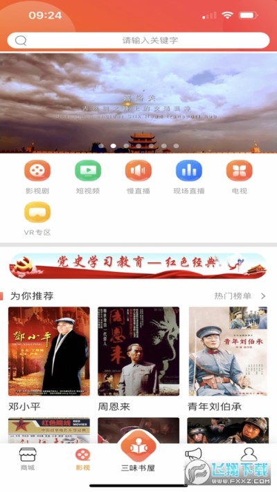 3.平台内容主要由三味书屋、影视、大喇叭、超市和我的五部分组成。