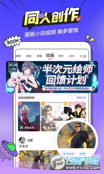 5、众多极具创作力的硬核二次元用户团体,用户需要上传自己的相关作品才可以开通自己的作者账号。