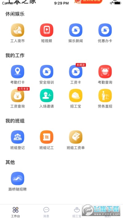 1、打开桂建通工人端app,即如图:先点击"绑定银行卡”