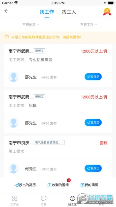 专属邀请服务,参与场地面试,通过之后即可开始工作,保证工人的权益