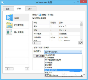 在没有键盘或者键盘失灵的情况下,我们可以只用一个鼠标来操作windows吗?WGestures是一款免费的鼠标全局手势软件,WGestures 可以作用于几乎所有的 Windows 程序!你可以设置手势来执行前进、后退、关闭窗口、最大化、最小化、复制、粘贴、执行命令代码、输出文本、打开网址、运行程序、执行快捷键等等实用的操作。